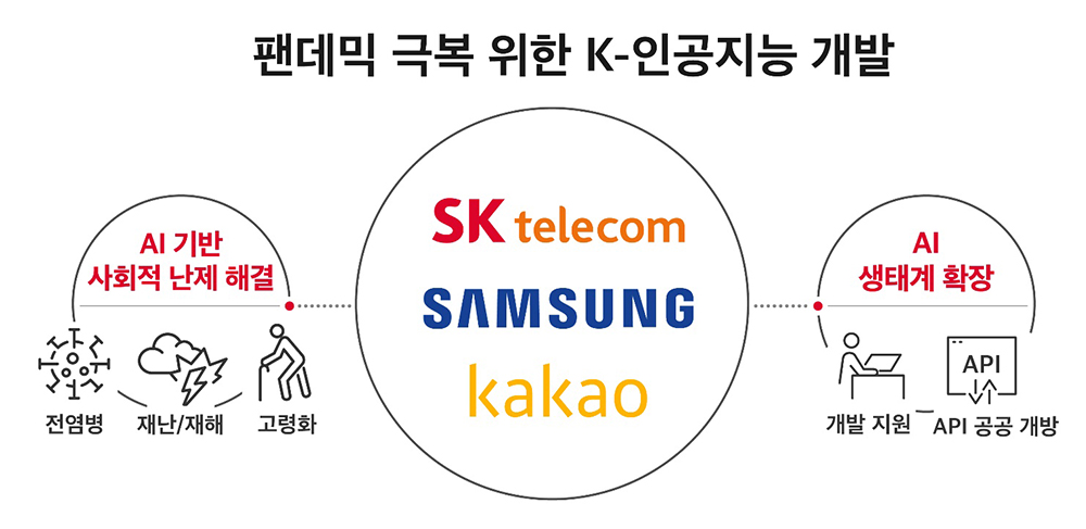 3사는 '팬데믹 극복 AI'를 시작으로 고령화, 미세먼지 등 사회적 난제 해결을 위한 AI 연구 협력을 이어가기로 함